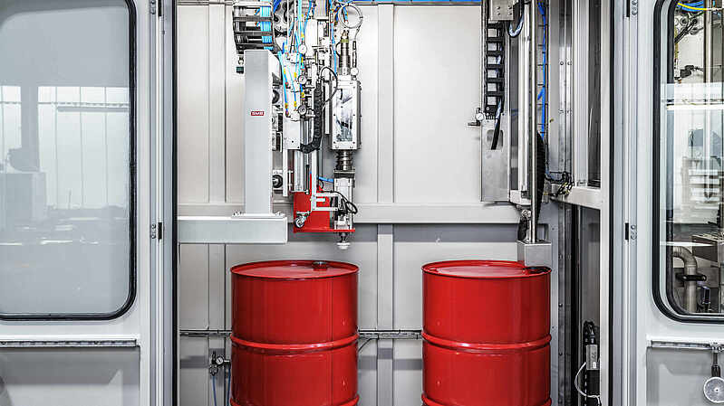 Die Fassabfüllung wird in vielen Industriezweigen eingesetzt, wie zum Beispiel in der chemischen, pharmazeutischen oder Lebensmittelindustrie. Die Anforderungen an die Fassabfüllung sind je nach Branche sehr unterschiedlich, deshalb passen wir unsere Abfüllanlagen an Ihre individuellen Anforderungen an. Das breite Einsatzspektrum der Anlage ergibt sich aus ihrer Eignung für Lebensmittel, der ATEX-Zertifizierung, einer integrierten Dichtigkeitsprüfung sowie der Inertisierung der Gebinde.