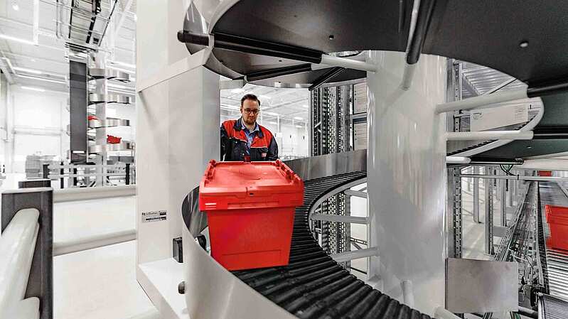Kürzere Wegezeiten dank Behälterfördertechnik