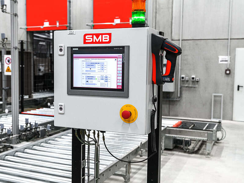 Für das automatische Palettenlager von SMB erhalten Sie eine Materialflusssteuerung, die Lagerverwaltungssystem und Materialflussrechner in unserer Softwarelösung LVS/MFR vereint.