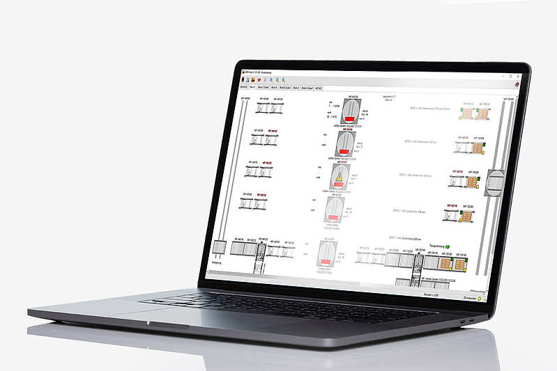 Ein weiterer Vorteil unserer Softwarelösungen: die Visualisierung aller Prozesse. Das gibt den Anwendenden nicht nur einen Überblick über alle Transportprozesse und aktuell gelagerten Waren, sondern ermöglicht auch das manuelle Eingreifen beispielsweise im Störungsfall oder aufgrund der Priorisierung eines Auftrags.