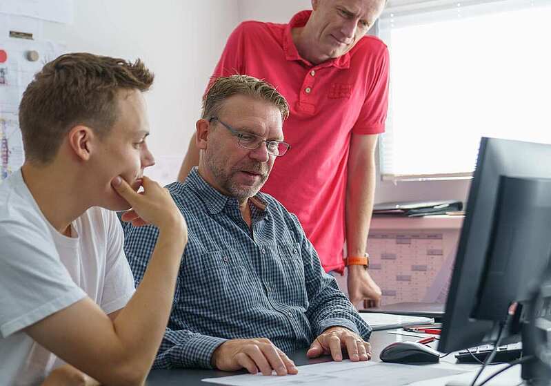 Unser Alleinstellungsmerkmal: Unser Team begleitet ein Projekt von der ersten Machbarkeitsstudie bis zur finalen Inbetriebnahme. Von der Erstellung des Pflichtenhefts über das Detail-Engineering bis hin zum Construction Management – als Teammitglied bleibt man in allen Konstruktionsphasen involviert. Und wenn's mal beim Kunden hakt? Dann ist man auch schon mal beim Troubleshooting vor Ort dabei.