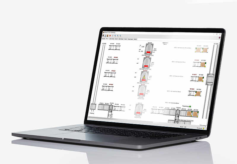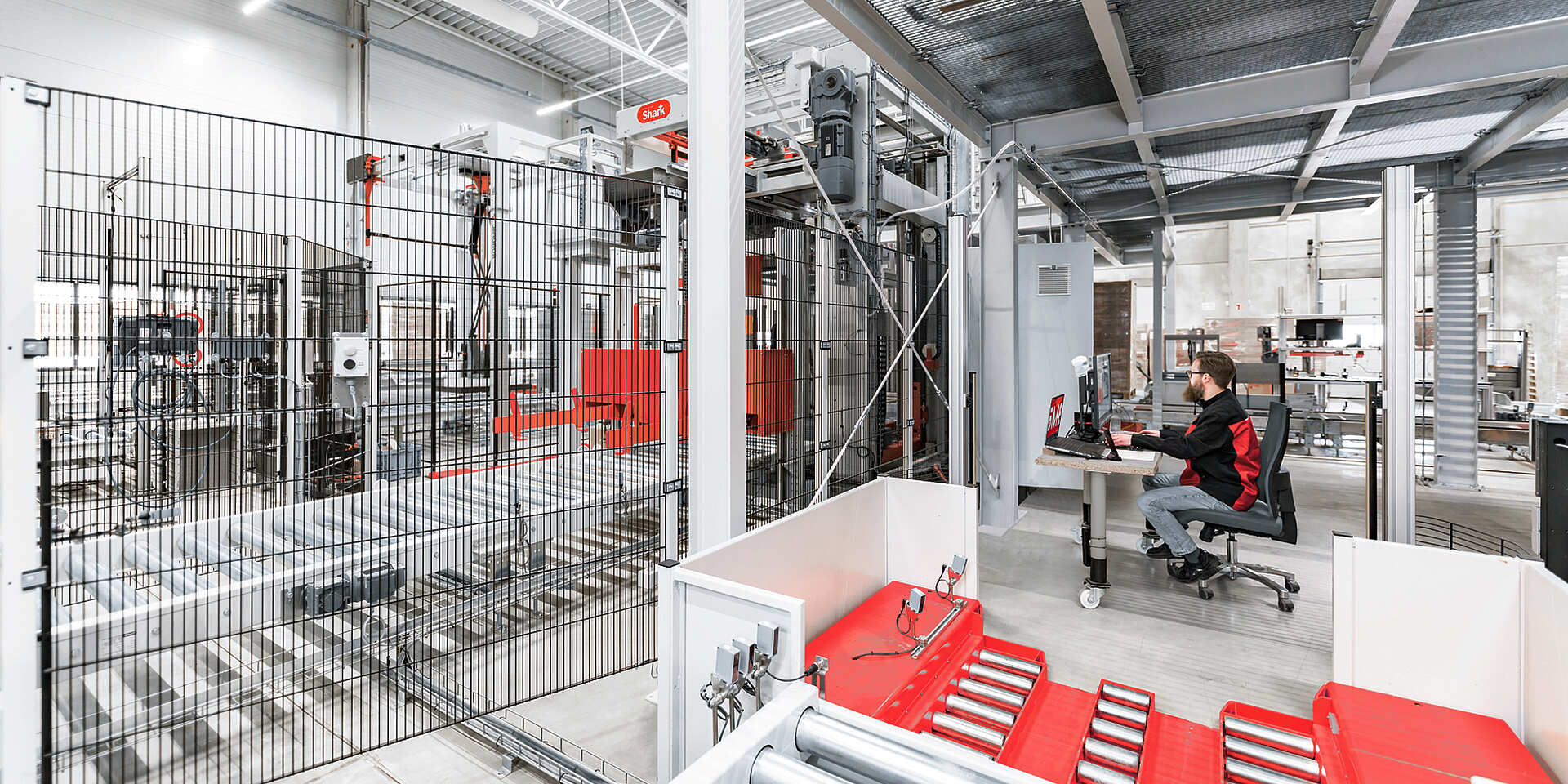 Die Steuerung von und die Kommunikation zwischen Fördersystemen wie Verschiebe- und Verfahrwagen, Regalbediengeräten oder unseren Regalbediengeräten mit Paletten-Shuttle – und damit der gesamte innerbetriebliche Materialfluss – gehören dabei zum Kern seines Aufgabenbereichs. Durch die Visualisierung der Prozesse können Mitarbeitende den Materialfluss zu jedem Zeitpunkt überwachen – und bei Bedarf manuell eingreifen.