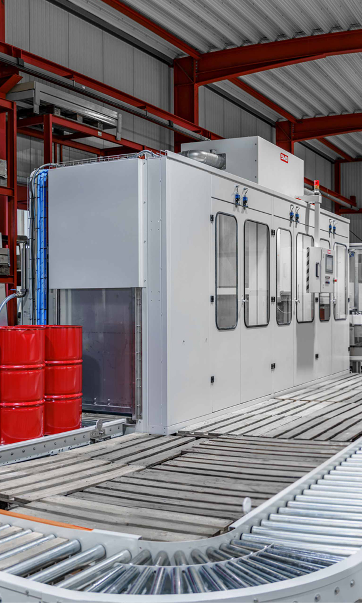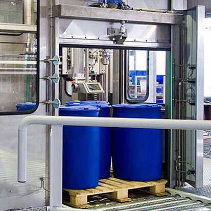 Unsere vollautomatischen Palettenabfüllanlagen eignen sich besonders für die Klein-Chargen-Abfüllung.