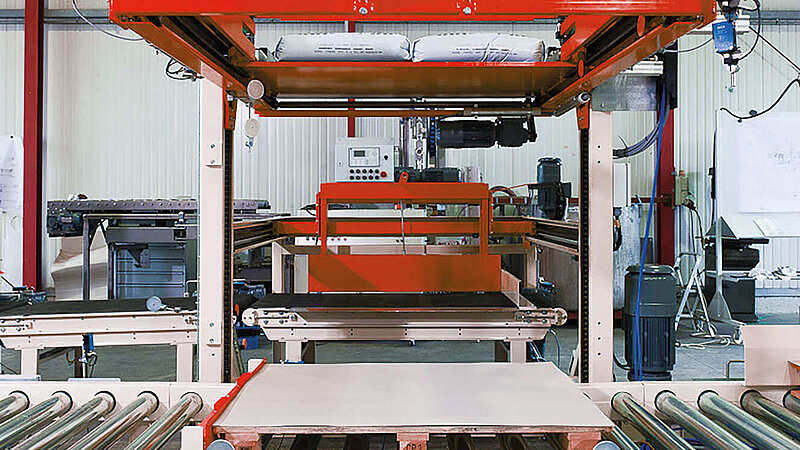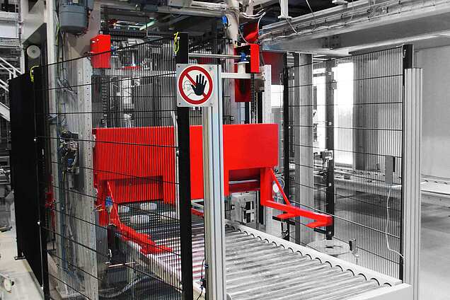 Über stationäre Fördertechnik, wie Rollenbahnen, Gliederbänder, Rollenförderer, Kettenförderer oder Palettenfahrwagen, können leere Paletten vom Palettierer automatisch übernommen und volle Paletten an nachgelagerte Fördersysteme übergeben werden. So werden Lagenpalettierer zu einem Teil der Logistikkette – von der Palettierung bis hin zur automatischen Einlagerung.