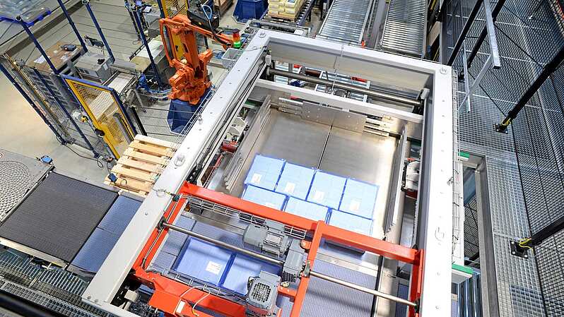 Hocheinlauf: Lagenpalettierer mit Produkteinlauf oben