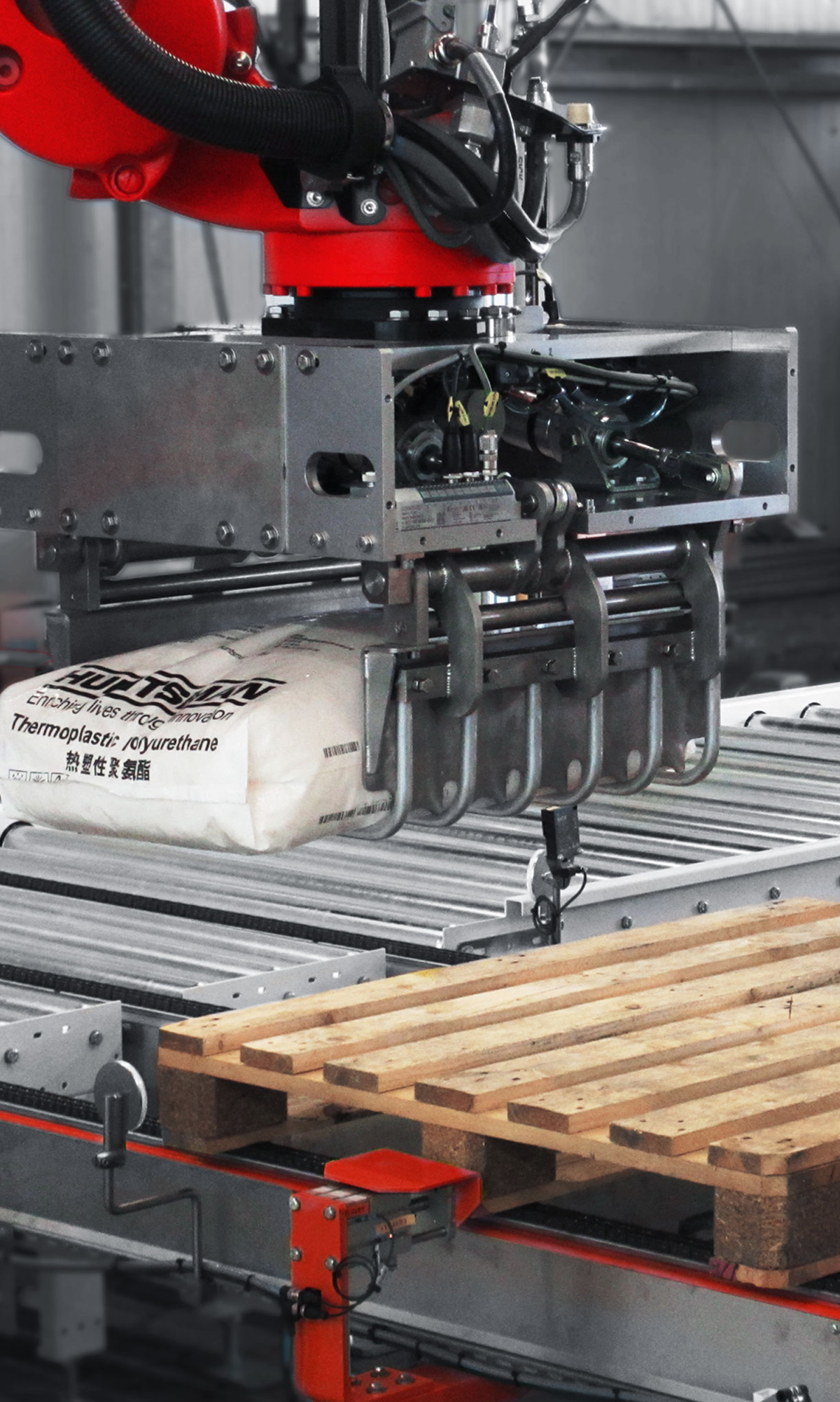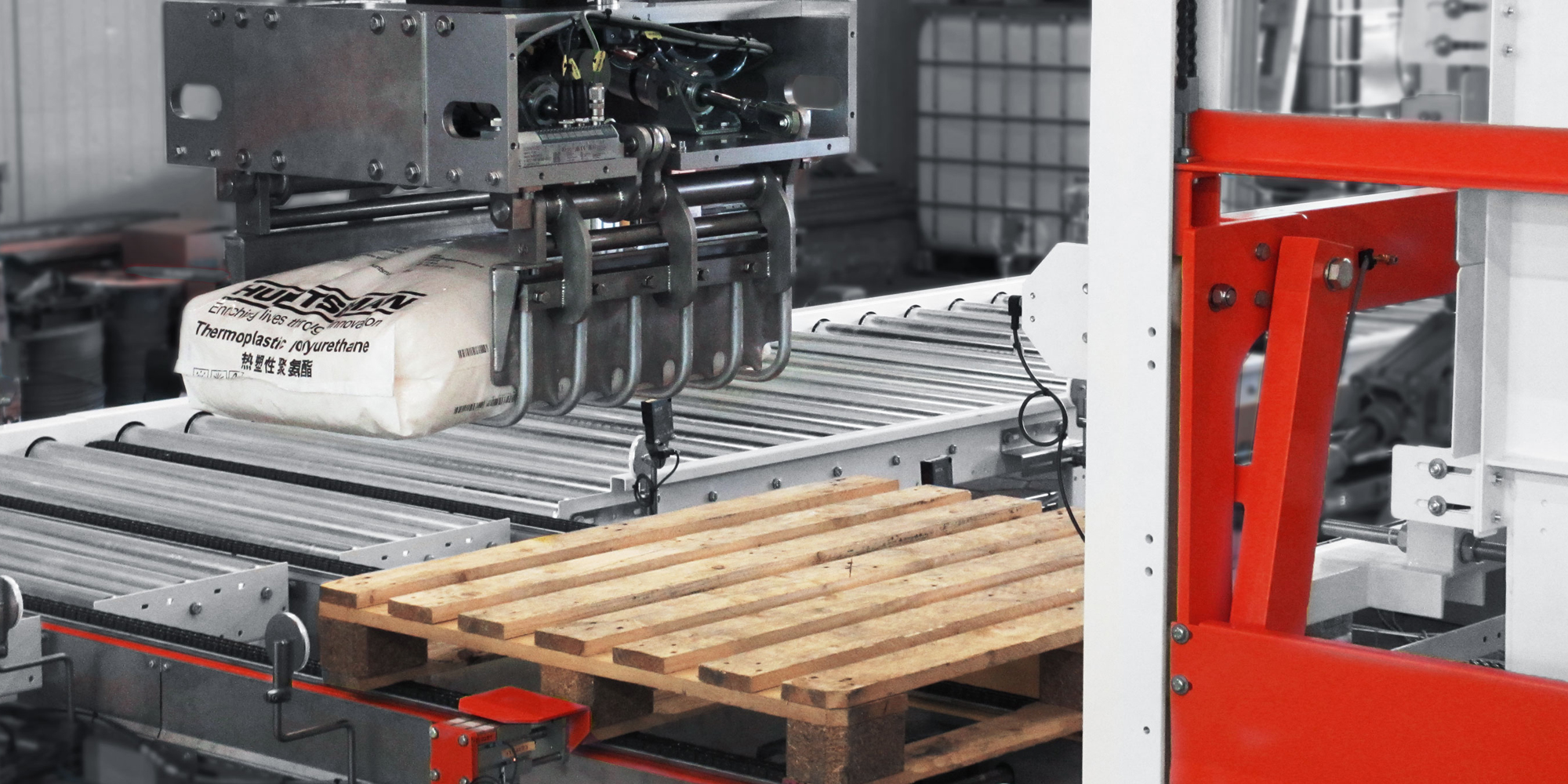 - Vollautomatischer Sackpalettierer mit Kombigreifer