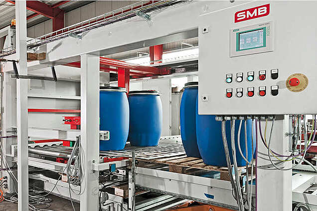 Sie möchten Fässer, Eimer, Kanister oder Hobbocks palettieren?